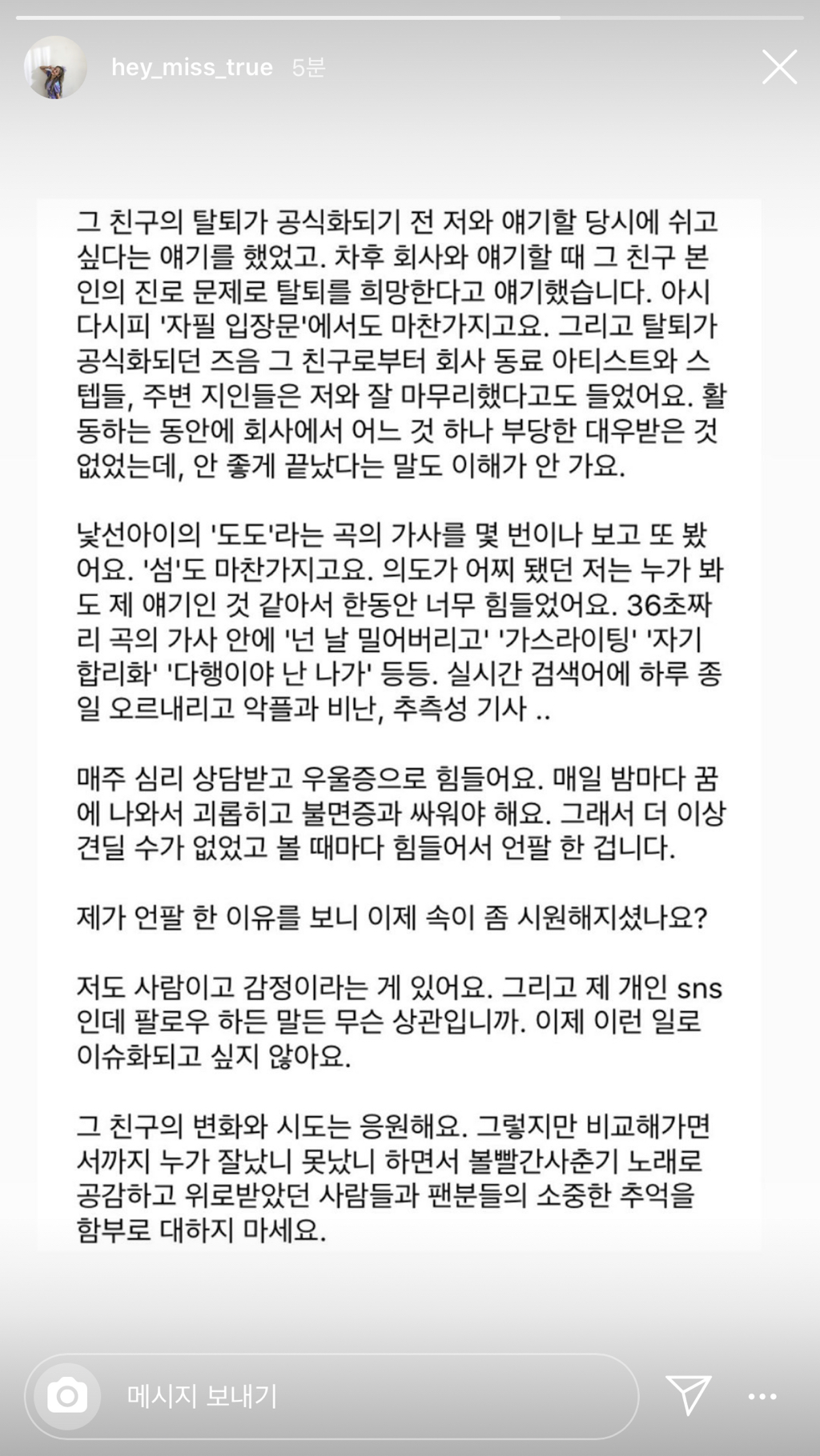 안지영은 3일 인스타그램 스토리를 통해 그간의 심경을 전했습니다. 안지영은 그동안 우지윤과 사이가 좋지 않은 게 아니냐는 추측에 시달려왔는데요.