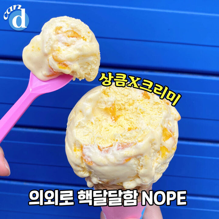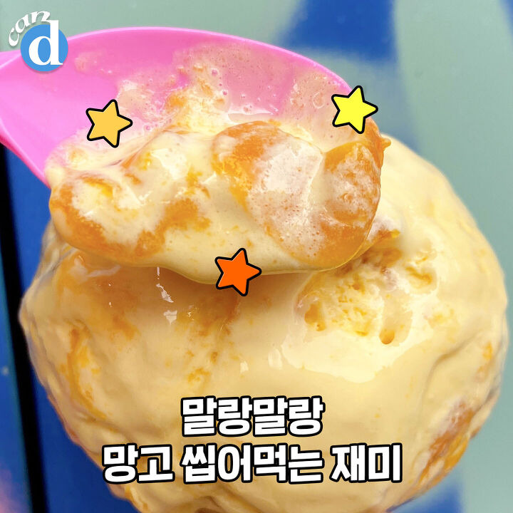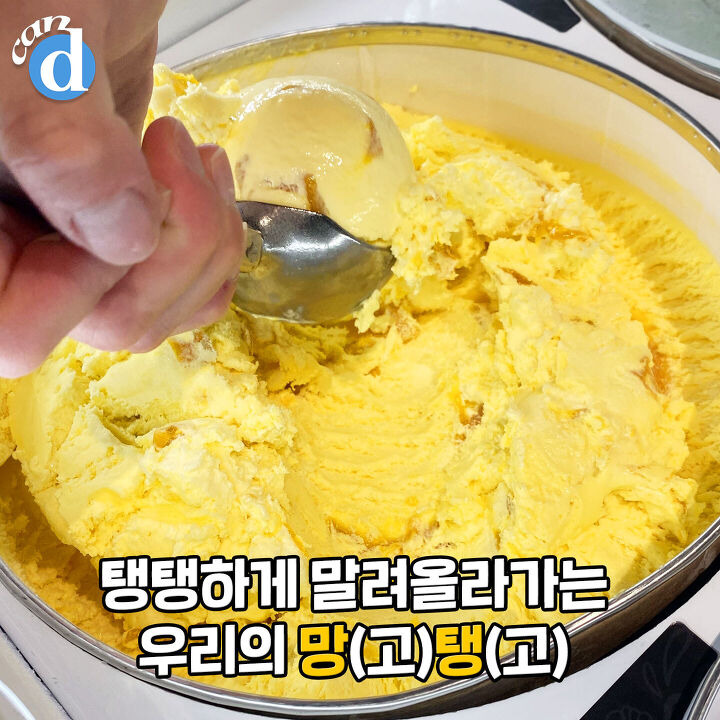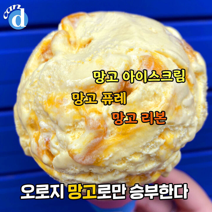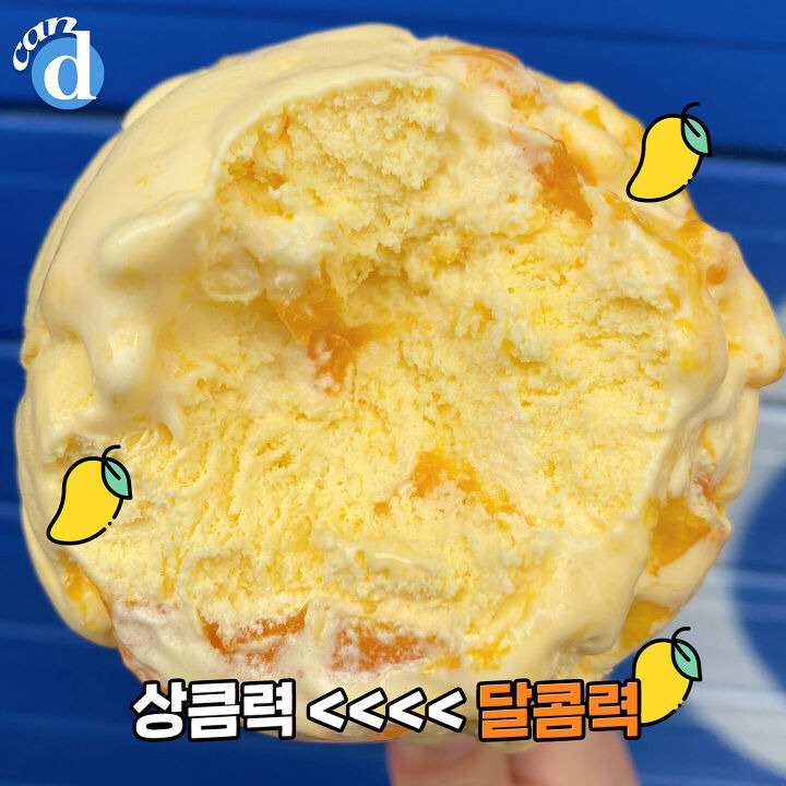 노란색의 망고향 아이스크림에 망고 퓨레, 망고 리본이 어우러진 맛♥