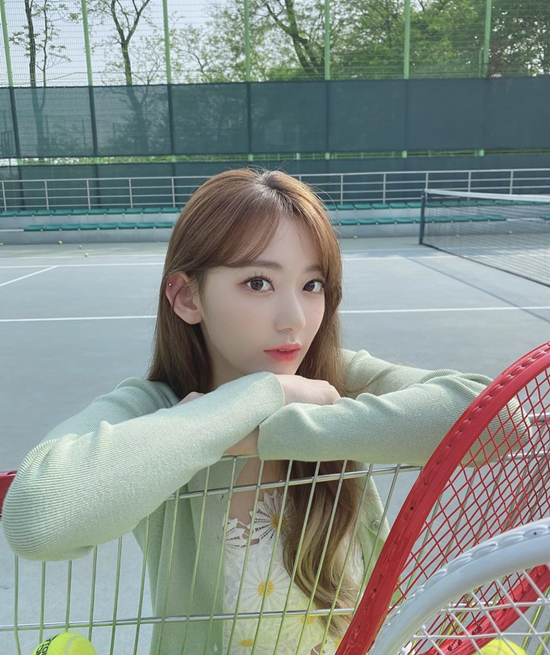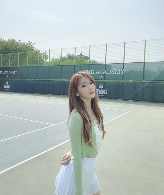 사쿠라는 청초한 매력을 발산했다. 테니스장에 서서 따스한 햇살을 만끽했다. 싱그러운 분위기가 돋보였다.