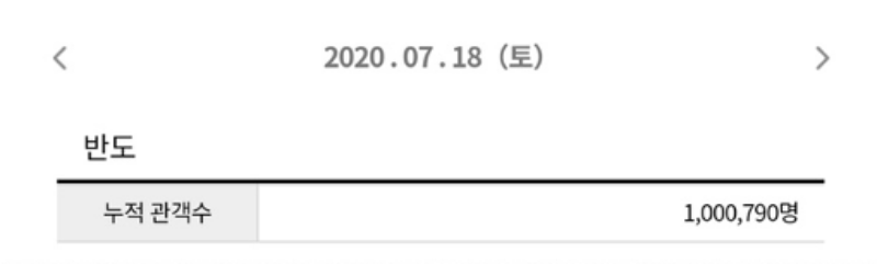 영진위 영화관 입장권 통합전산망에 따르면, ‘반도’는 18일 오전 8시 10분 기준, 누적 관객 수 100만 790명을 기록했다.