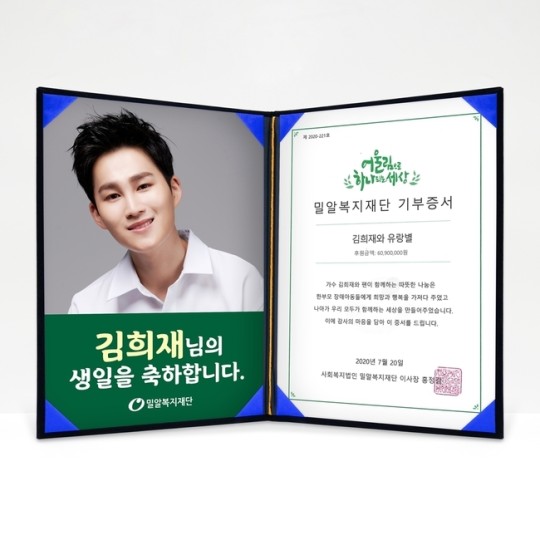 '밀알복지재단' 측은 22일 "김희재 팬클럽 '김희재와 유랑별'이 한부모 가정 장애아동을 위해 6,090만 원을 기부했다"고 밝혔다.