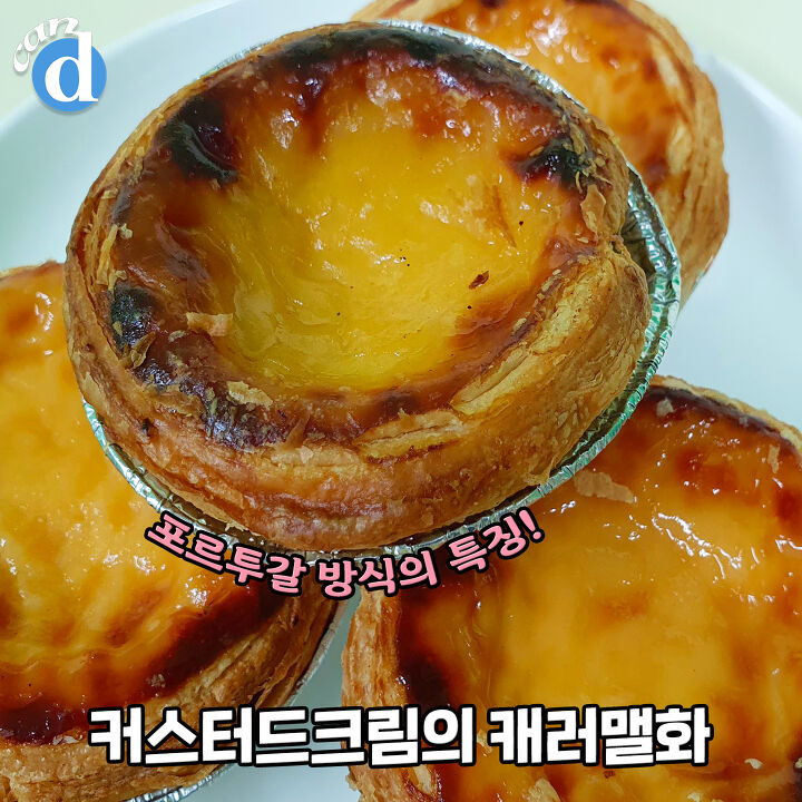 포르투갈 에그타르트는 구워낼때, 커스터드크림 윗부분을 카라멜라이즈했기 때문에
