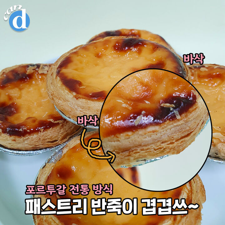 또 포르투갈 에그타르트는 패스트리 도우를 사용하여