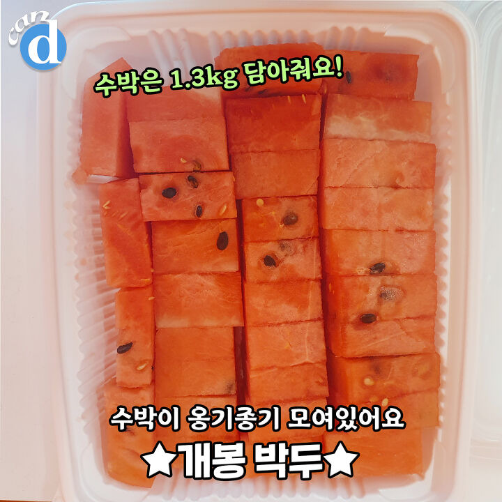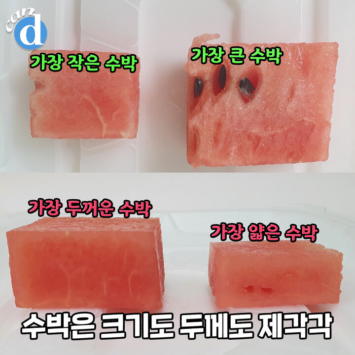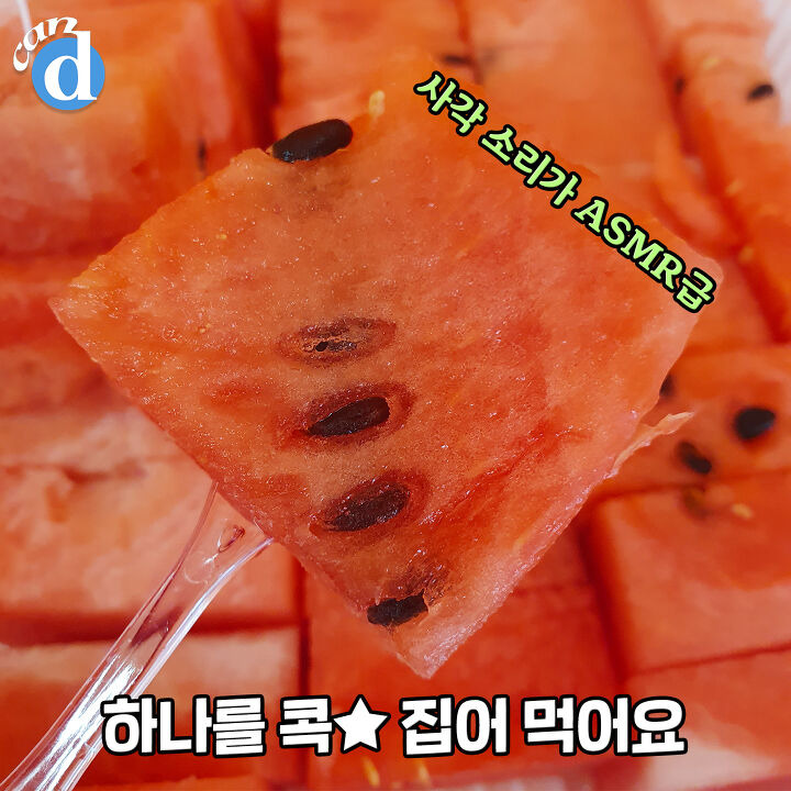 수박의 크기도 두께도 제각각~ 깍둑깍둑 썰려있는 수박은 한 입 사이즈각!