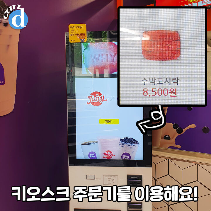 캔디는 키오스크 주문기로 수박 도시락을 샀어요.