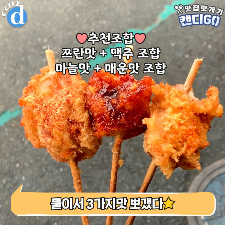 그냥 닭꼬치도 아닌 ‘튀김 닭꼬치’가 이 정도 양, 가격이면 캔디는 괜찮다고 생각해요.