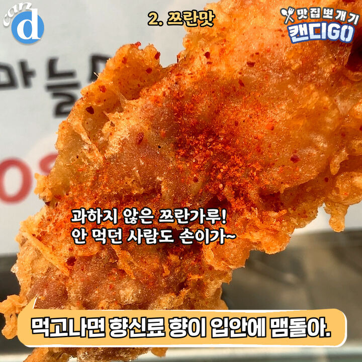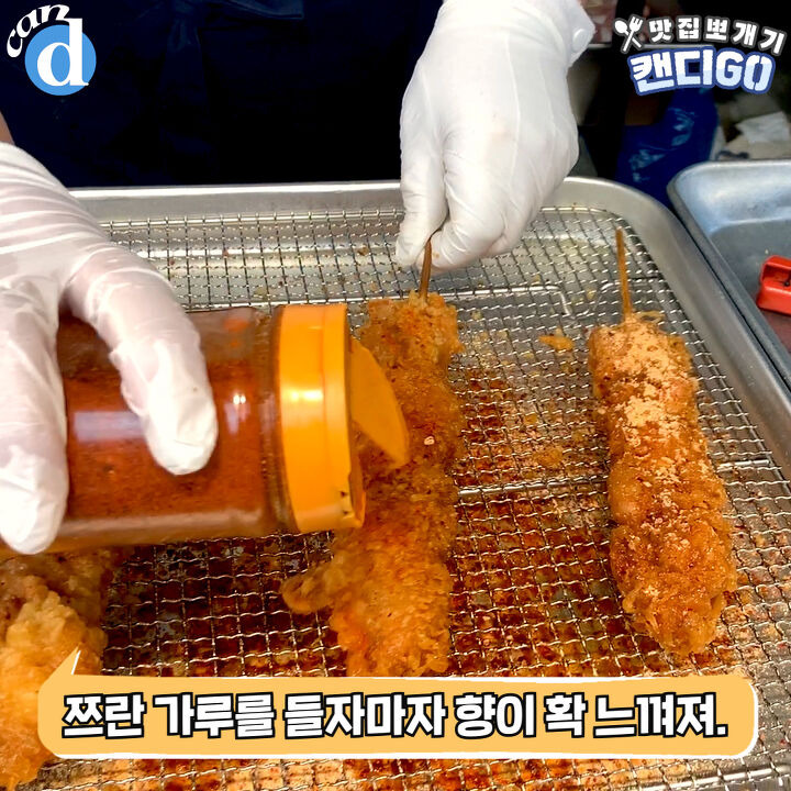 멀리서부터 튀김 냄새가 캔디를 이끌었어요.