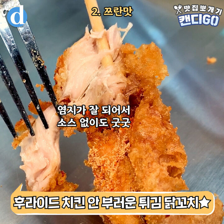 라면, 따뜻한 국수, 파전, 치킨 등.. 캔디는 오늘 ‘튀김 닭꼬치’를 먹어봤어요.