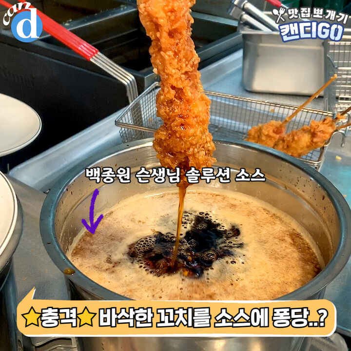 꼬치를 바삭하게 튀겼다면 다음은 소스에 퐁당 빠질 차례예요.