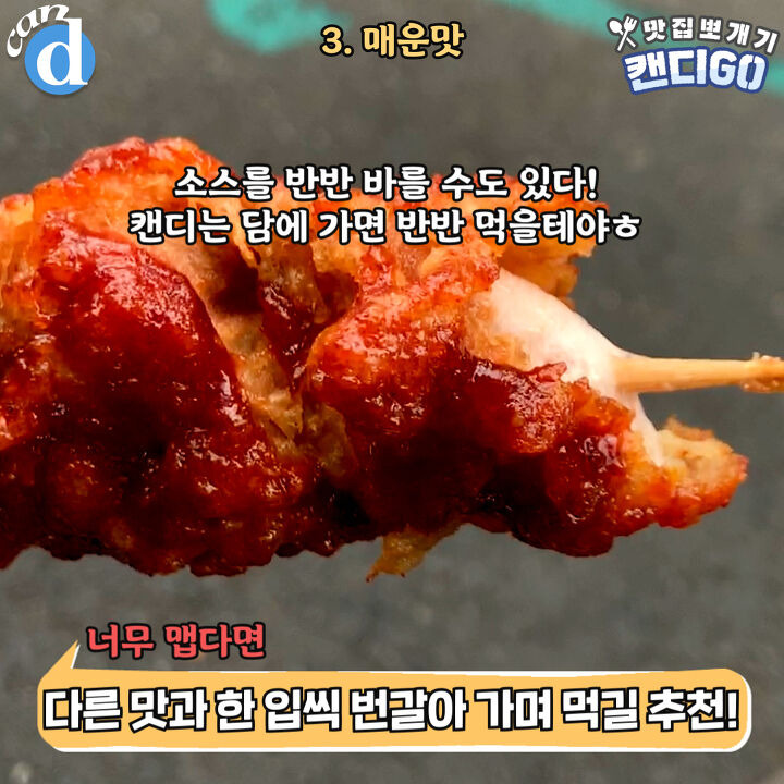 소스가 너무 맵다면 다른 맛과 한 입씩 번갈아 가면서 먹기를 추천해요!