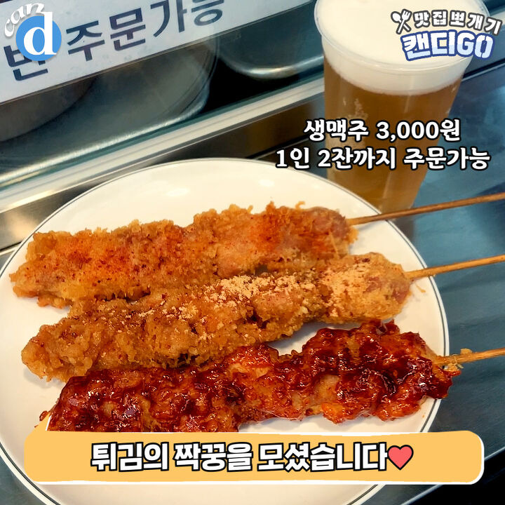 아, 이곳의 꼬치 맛은 세 가지지만 염지가 잘 되어있는 닭에 바삭한 튀김을 입혀서인지 소스 없이 후라이드로도 많이 찾는다고 해요.