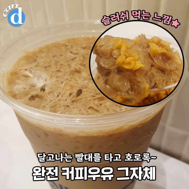 하지만 카페라떼 맛 자체에는 변함이 없어요.가끔 빨대로 들어온 달고나가 씹히는 정도?!