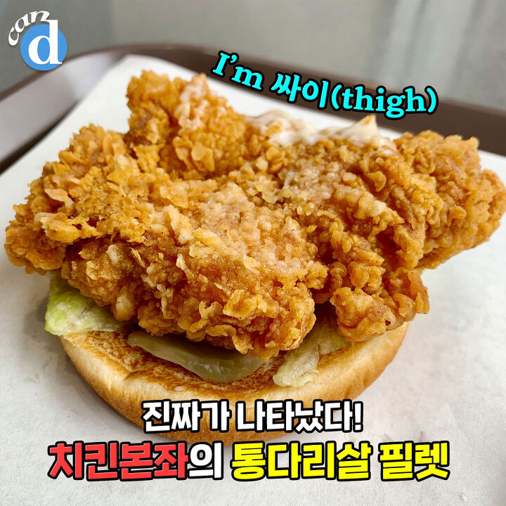 싸이(THIGH)는 '넓적다리 살'을 뜻해요. 말그대로 통다리살을 넣은 버거에요.