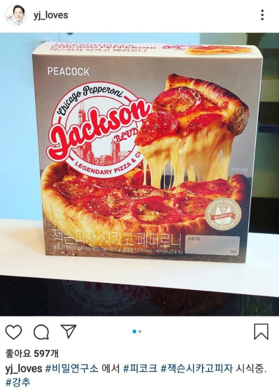 피코크 잭슨피자의 최신 버전이에요. 요 피자는 지난해 이마트와 이태원 잭슨피자의 콜라보로 탄생했어요.