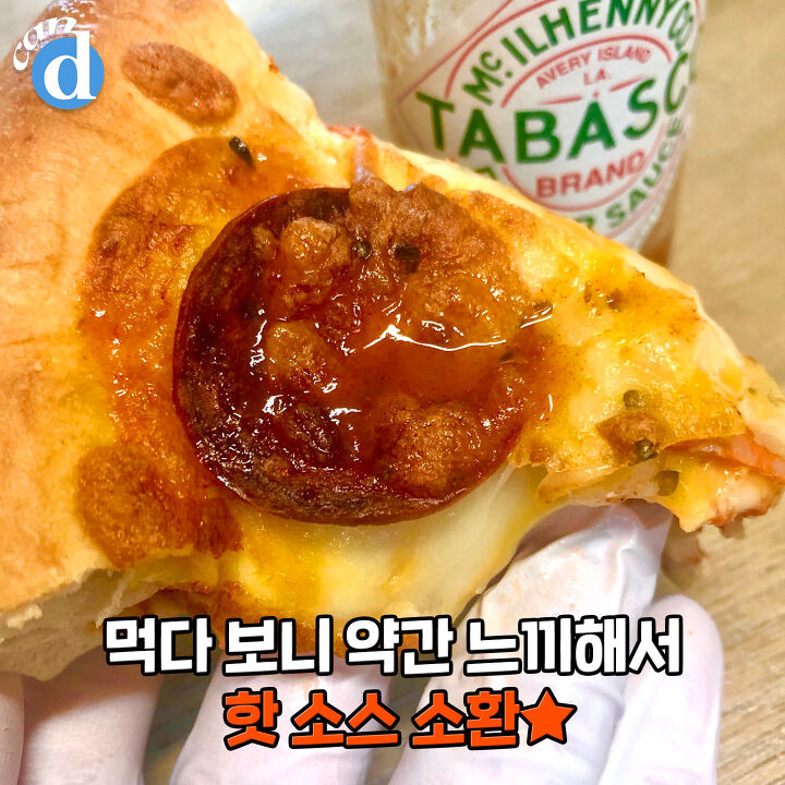 계속 먹다 보니 치즈가 가득 들어있는지라 역시 느끼해요. 그래서 소환한 핫 소스!