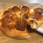 이번엔 도톰한 두께의 시카고 피자로 나왔어요.