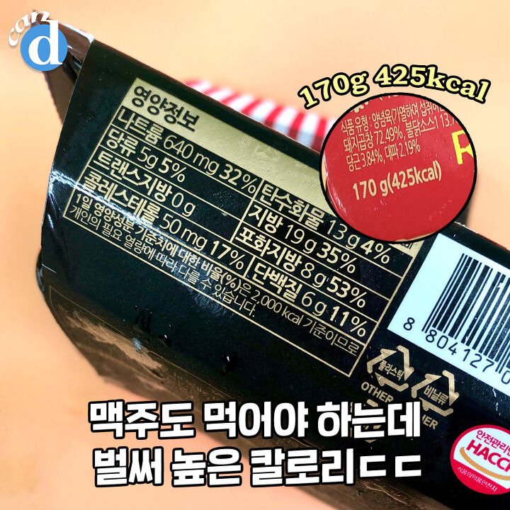 170g에 425kcal. 은근 칼로리가 높아요. 게다가 어디 이것만 먹나요?