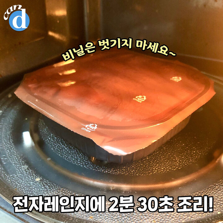 별도의 해동 없이 전자레인지에 1분 40초면 끝! 비닐은 벗기지 마세요~