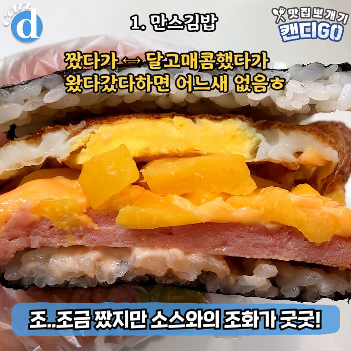 이렇게 오늘은 ‘만스김밥’을 다녀와봤어요. 드디어 캔디 먹킷리스트에 줄을 쫙~!