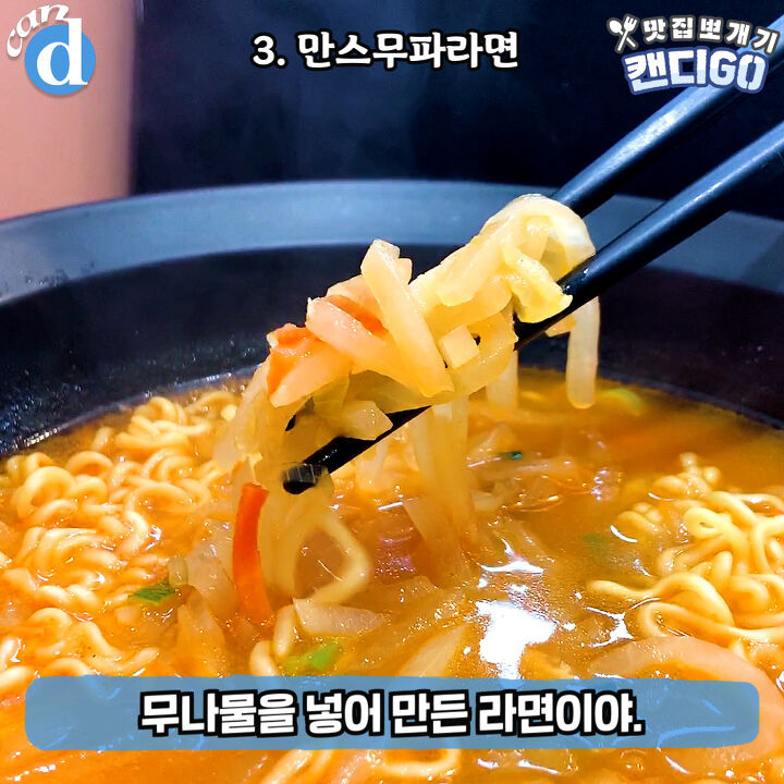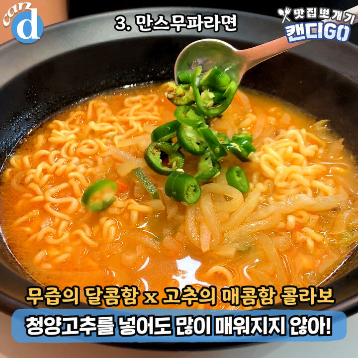 방송에서 MC분들과 사장님이 먹는 모습을 보며 캔디는 조용히 먹킷리스트에 ‘무파라면’을 적었더랬죠.