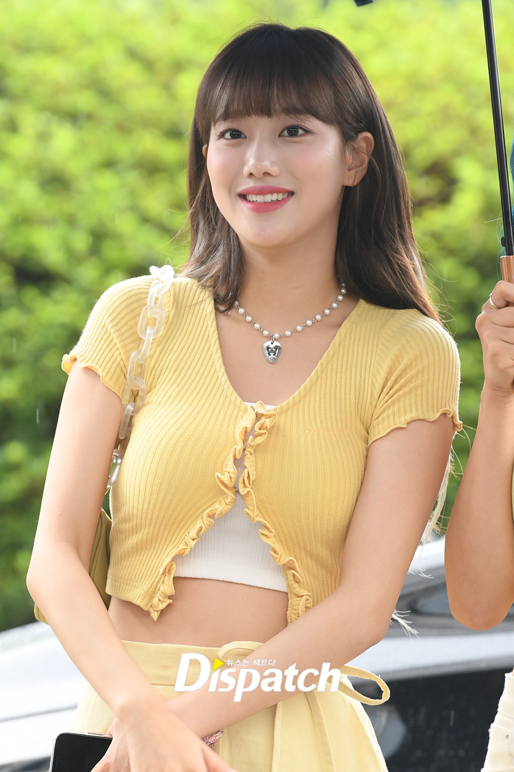 이나은은 노란 의상으로 상큼 청순 분위기를 완성했다.
