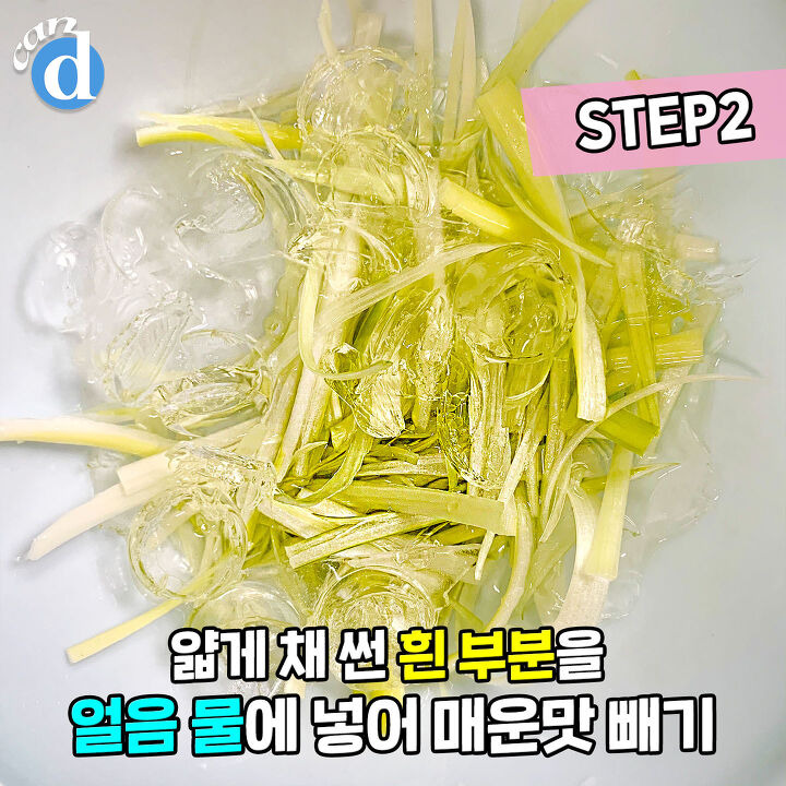 대파의 흰 뿌리 부분은 얼음물이나 찬 물에 담가둬요.