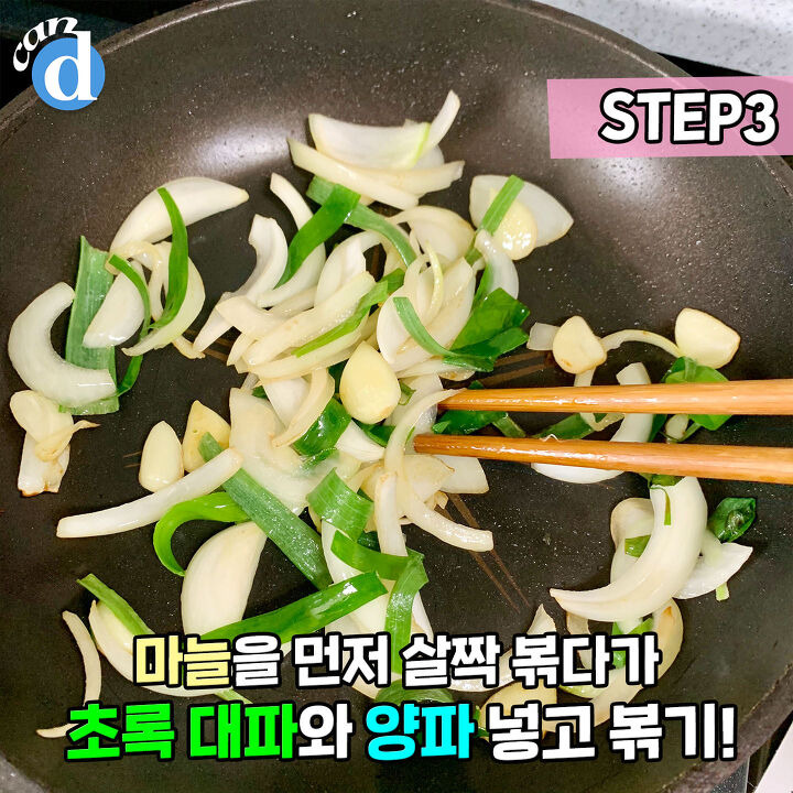 대파 초록 부분과 양파를 넣고 다 함께 볶기~!