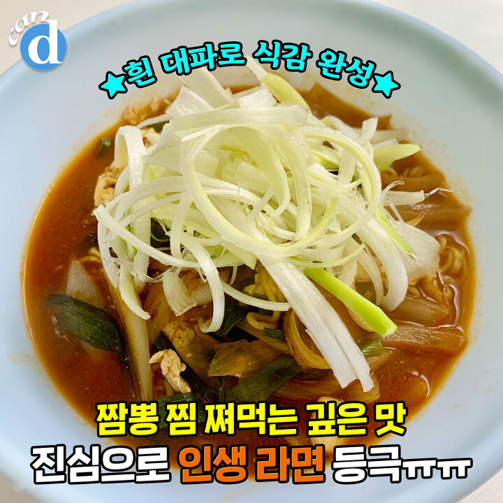 흰 대파와 라면이 같이 씹히면서 아삭거리는 식감과 향이 끝장나네요.