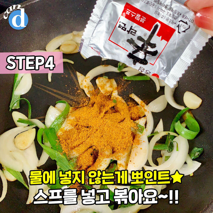 여기에 밑줄 쫙~스프를 물에 넣지 않는 라면이라는 게 뽀인트!