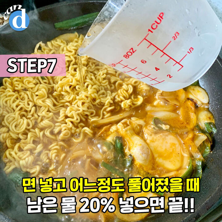 그러니까 면에 간이 배었을 때, 마지막으로 남은 물 20%를 넣으면 끝!