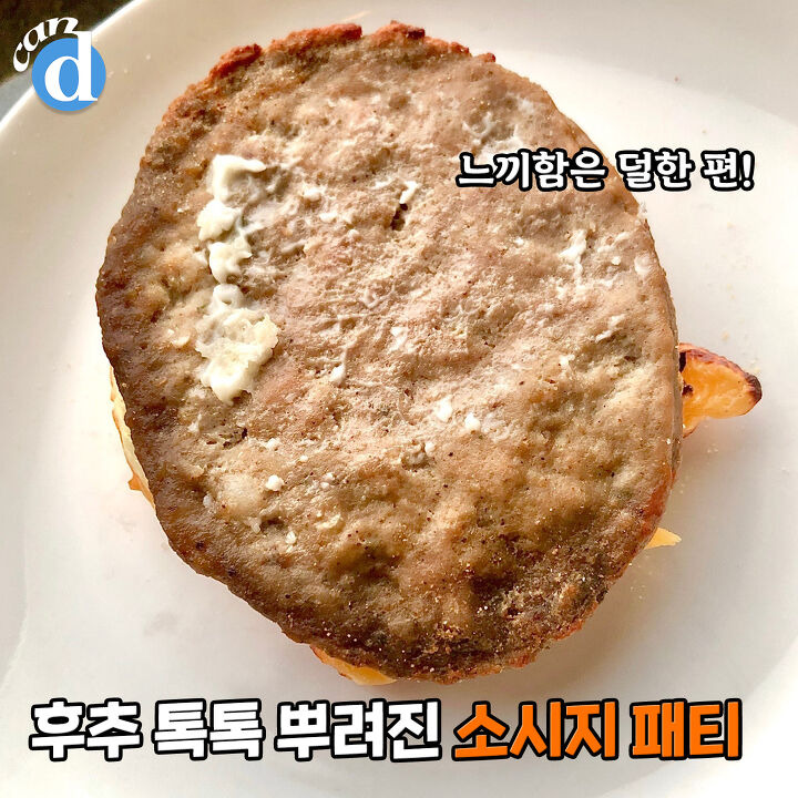 소시지 패티도 살펴볼까요? 잘 안 보이지만 후추가 톡톡 뿌려져 있어요.