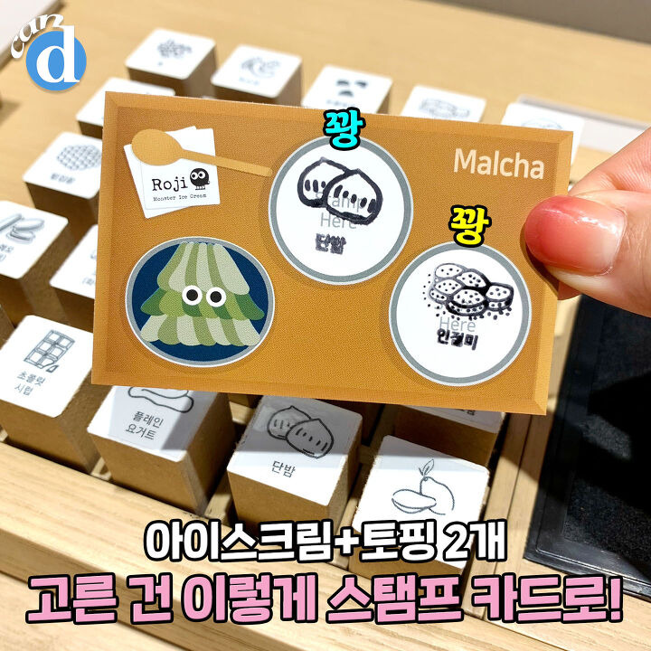 25가지의 토핑 중에 2개를 초이스★ 그리고 카드에 스탬프를 꽝꽝!