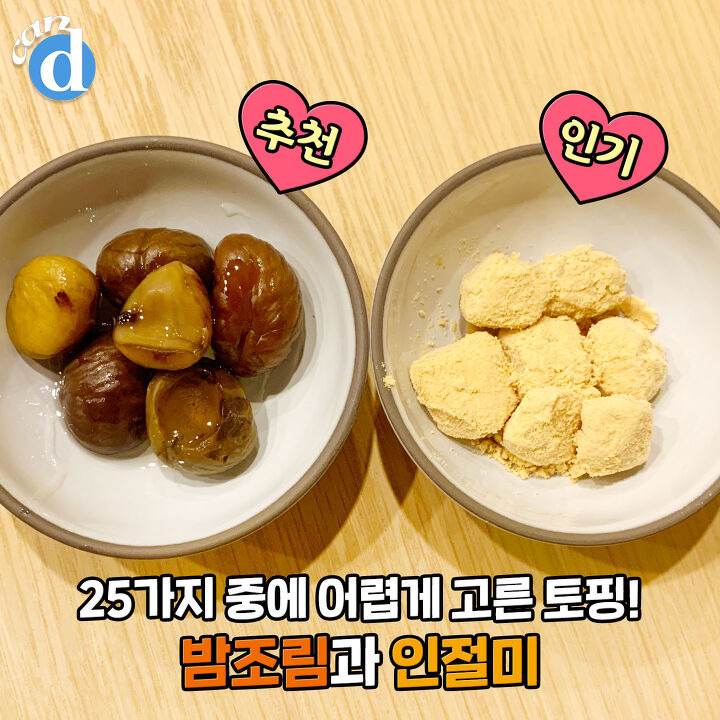 팥, 꿀, 딸기잼, 초코볼, 초코칩, 믹스넛... 휴, 고르기 힘들다!
