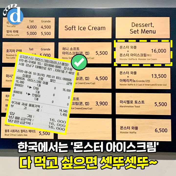 세트로 시키면 몬스터 아이스크림+와플이 16,000원!
