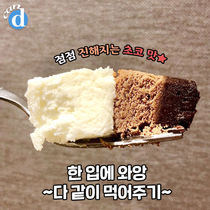 2층은 촉촉한 초코+치즈 케이크. 둘이 뭉칠 생각을 하다니 이 조합 칭찬해!