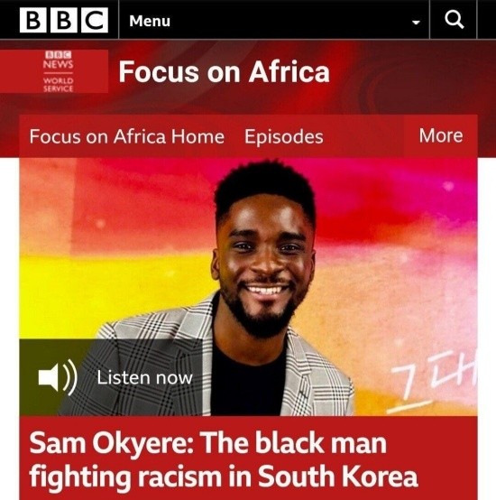 BBC는 지난 13일(현지시간) 샘 오취리와 인터뷰를 진행했다. '한국에서 인종차별에 맞서고 있는 흑인'(The black man fighting racism in South Korea)라고 설명했다.