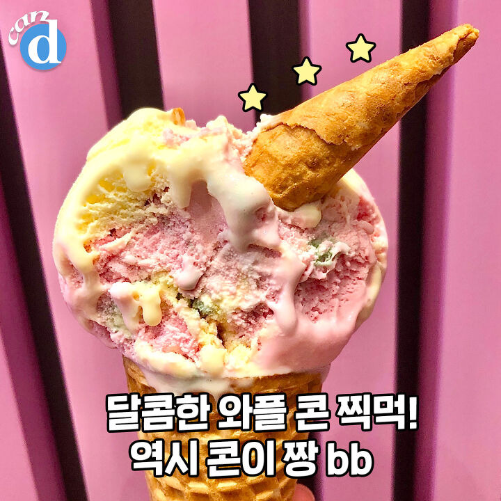 더운 날씨에 금방 녹을까 걱정이지만 와플 콘 포기 못해..!