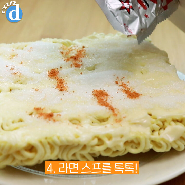 4. 라면 스프를 톡톡 뿌려줘요.