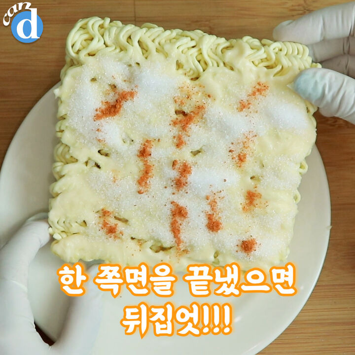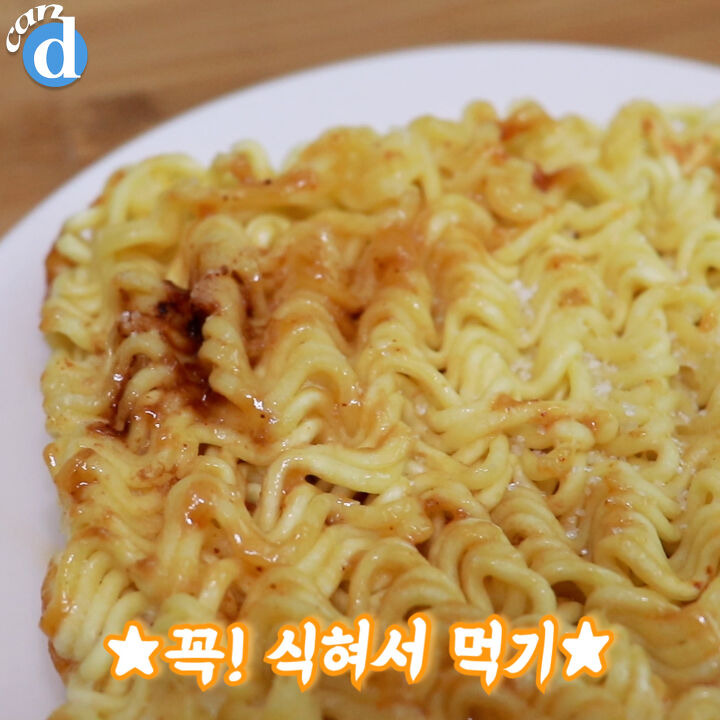 생라면을 뒤집고 1~4번을 반복해요.