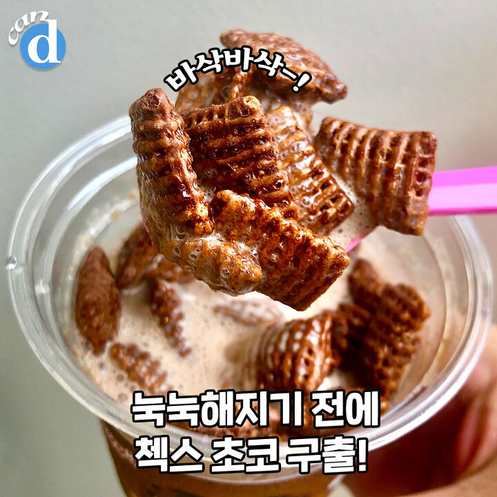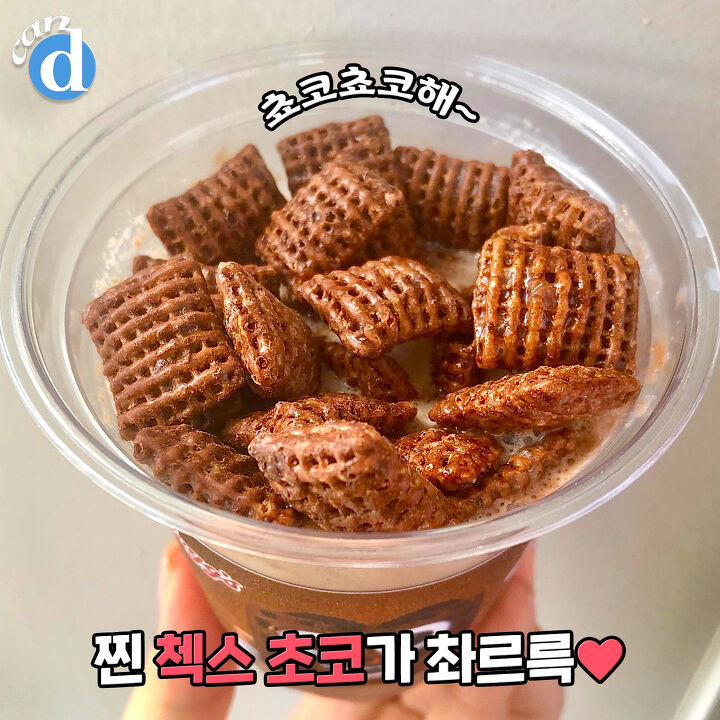 그럼 얼른 위에 있는 첵스초코 한 입 떠먹어 줄게요. 와작와작 씹히는 바삭함 못 잃어~