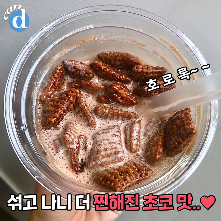 바삭한 첵스초코를 떠나보내기 힘들지만ㅠ 어느 정도 바삭함을 즐겼다면 첵스초코와 음료를 섞섞.