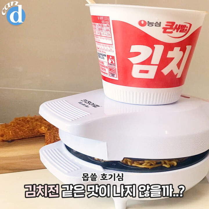 쉐킷쉐킷 잘 섞어준 사발면을 와플메이커에 투척!