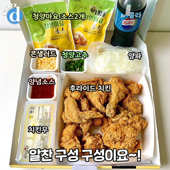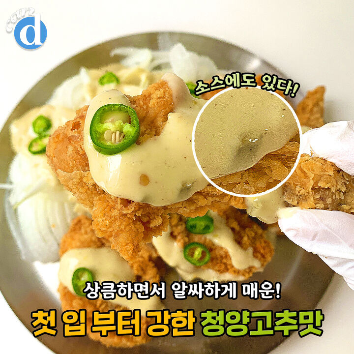 새콤달콤 마요소스와 깔끔하게 매운 청양고추 조합이 치킨의 느끼함을 다 잡아주는 느낌!