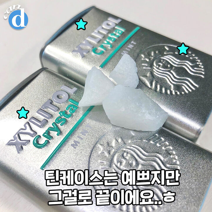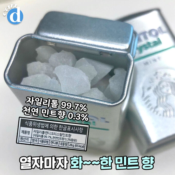 스타벅스에서 나온 사탕이 궁금해서 구입했는데... 자일리톨 함유량이 99.7%, 매우 높다는 점이 인상적.