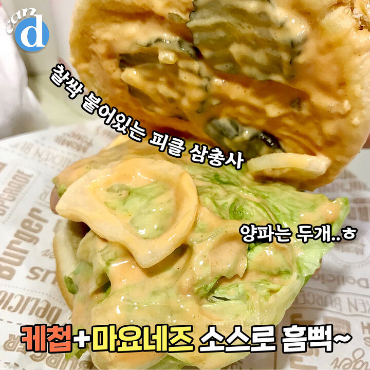 타르타르소스 같이 새콤 달달한 맛. 패티의 느끼함을 은근슬쩍 가져가 줌~