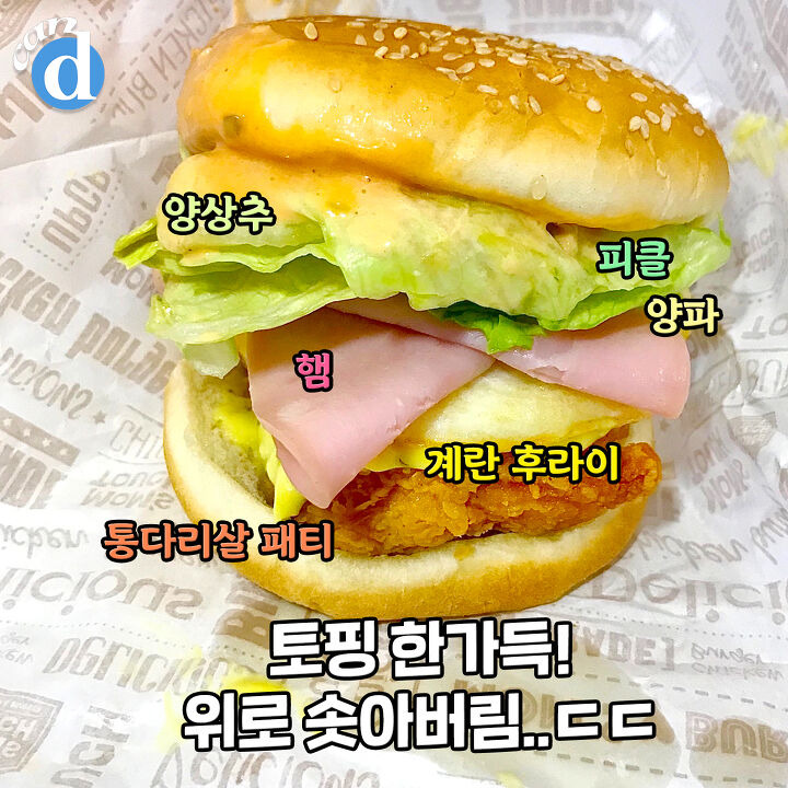 -양상추 -양파 -피클 -햄 -계란후라이 -통다리살패티