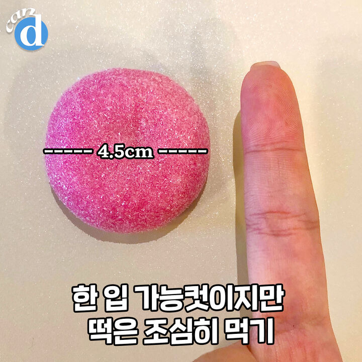크기는 아담해요. 검지 두 마디 정도인 4.5cm! 한입 컷 충분하지만 떡은 조심히 먹기!