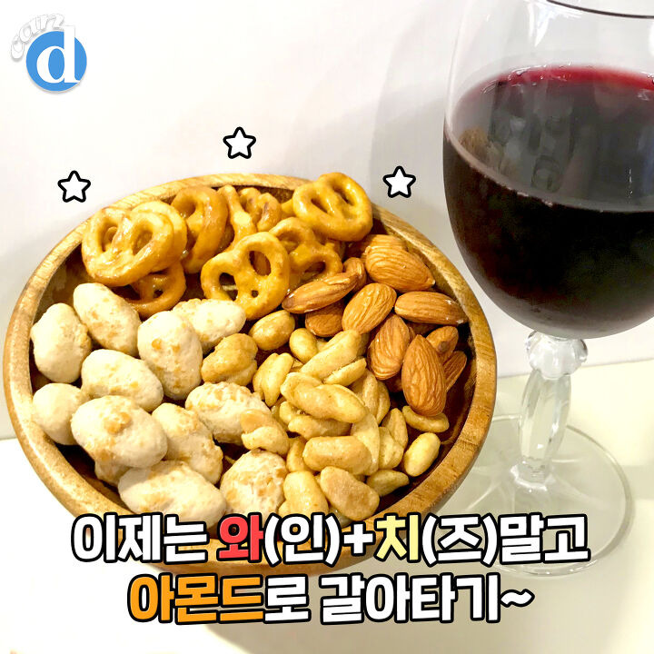아몬드에 맥주는 진리 조합이지만 오늘은 와인을 소환해 봤어요. 은근 잘 어울리더라구요.