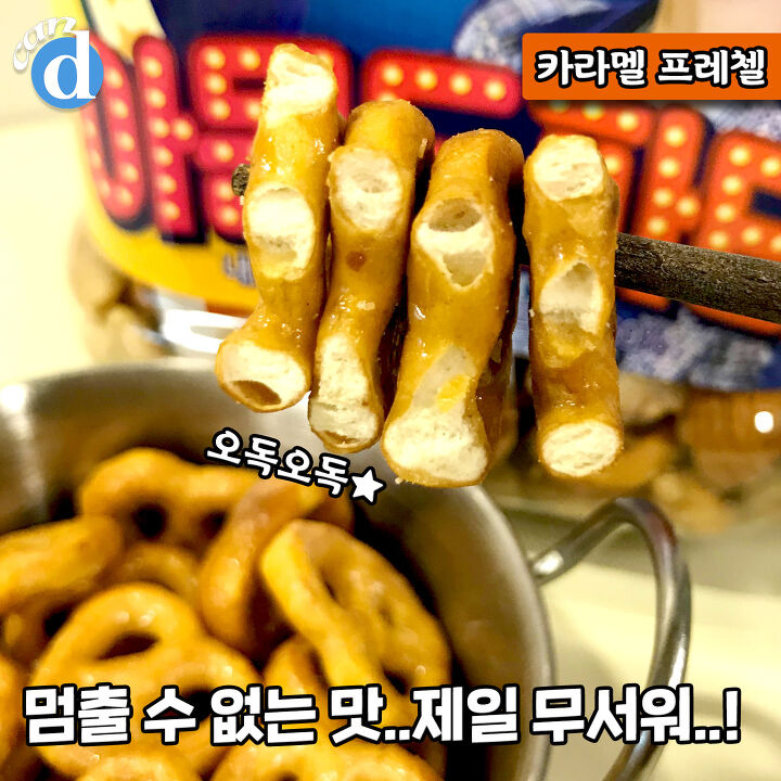 한 입에 가득 넣어줘야 찐 맛을 느낄 수 있다구요. 같은 카라멜 코팅이지만 프레첼보다 더 찐득해요.