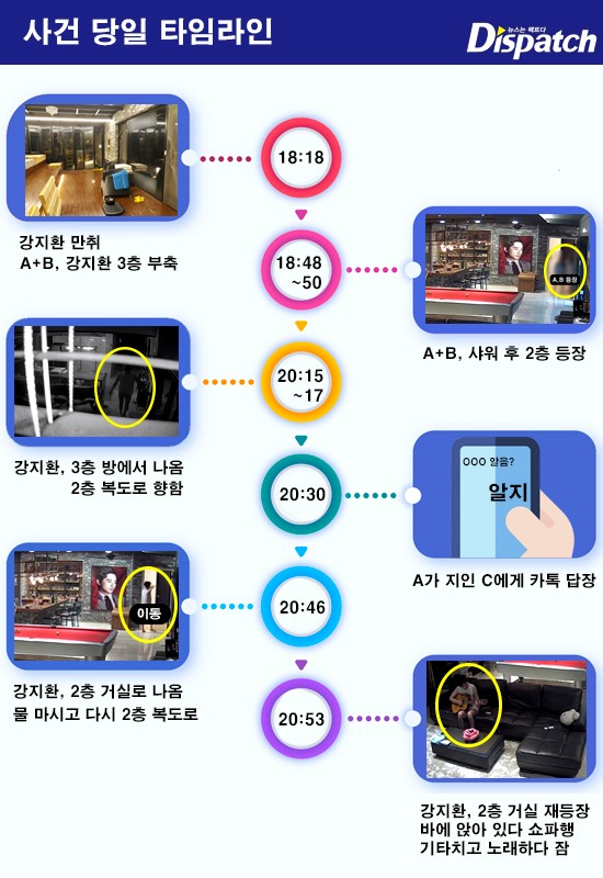 강지환 측은 "A는 평소보다 적게 마셨다. 강지환을 부축해 3층 침실로 옮긴 뒤, 샤워를 하고 (강지환이 준) 위로금도 확인했다"며 당시를 되짚었다.